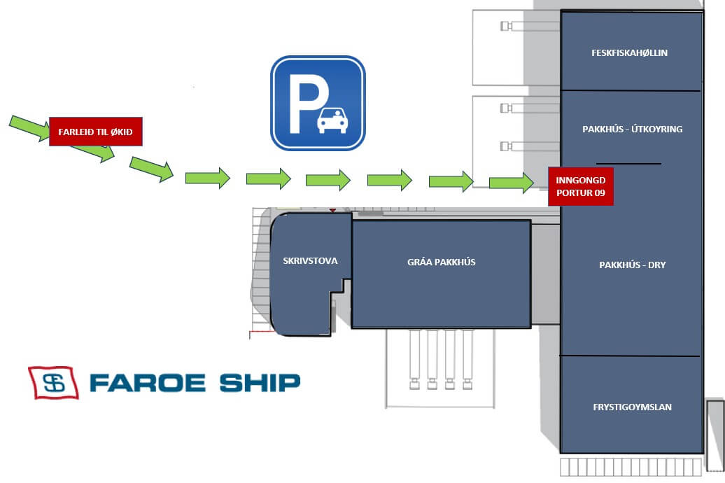 Høllin hjá Faroe Ship er á Eystaru bryggju í Havn. Trýst her fyri at síggja, hvussu tú finnur okkum.
